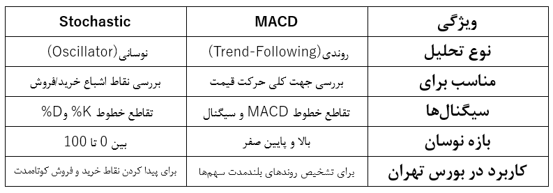 در یک نگاه ساده، تفاوت اصلی این دو اندیکاتور در این است که: