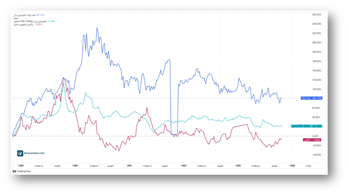 همانطور که در نمودار بالامشاهده میشود، روند قیمت سهام پتروشیمی زاگرس تا حد زیادی با تغییرات نفت اوپک و متانول CFR چین همجهت است. در دورههای افزایش بهای نفت، قیمت متانول نیز رشد کرده و سودآوری زاگرس تقویت شده است. با این حال، نوسانات بازار سرمایه باعث شده واکنش سهام با تاخیر و شدت کمتر نسبت به متغیرهای جهانی ظاهر شود — الگویی که تأیید میکند اثر تصمیمات اوپک بر شرکتهای پتروشیمی، هرچند مثبت است، اما تدریجی و غیرمستقیم بروز میکند.