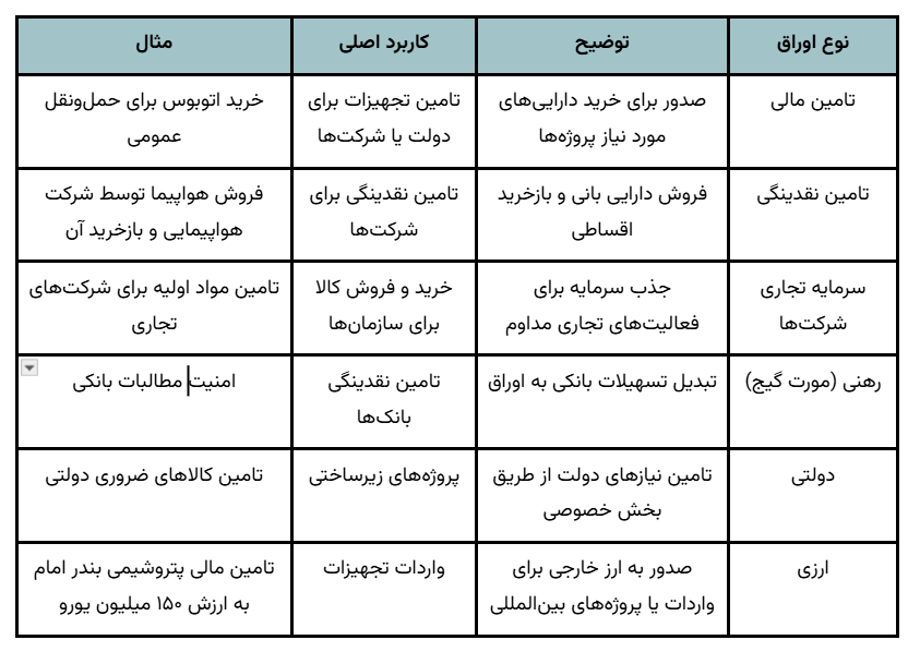 انواع مختلف اوراق مرابحه بر اساس کاربرد طراحی شدهاند. جدول زیر خلاصهای از انواع اصلی را نشان میدهد: