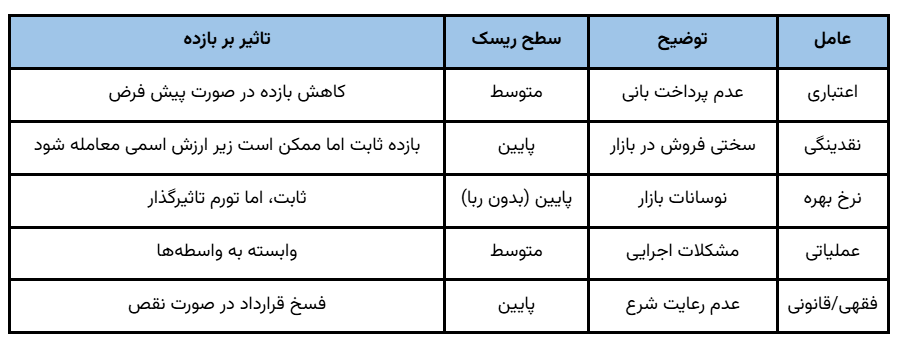 جدول مقایسه ریسکها و بازدهها (بر اساس دادههای عمومی بازار)در نهایت، اوراق مرابحه ابزاری کارآمد برای تامین مالی پایدار در اقتصاد اسلامی ایران است، اما موفقیت آن به رعایت دقیق مقررات و شرایط بازار بستگی دارد.